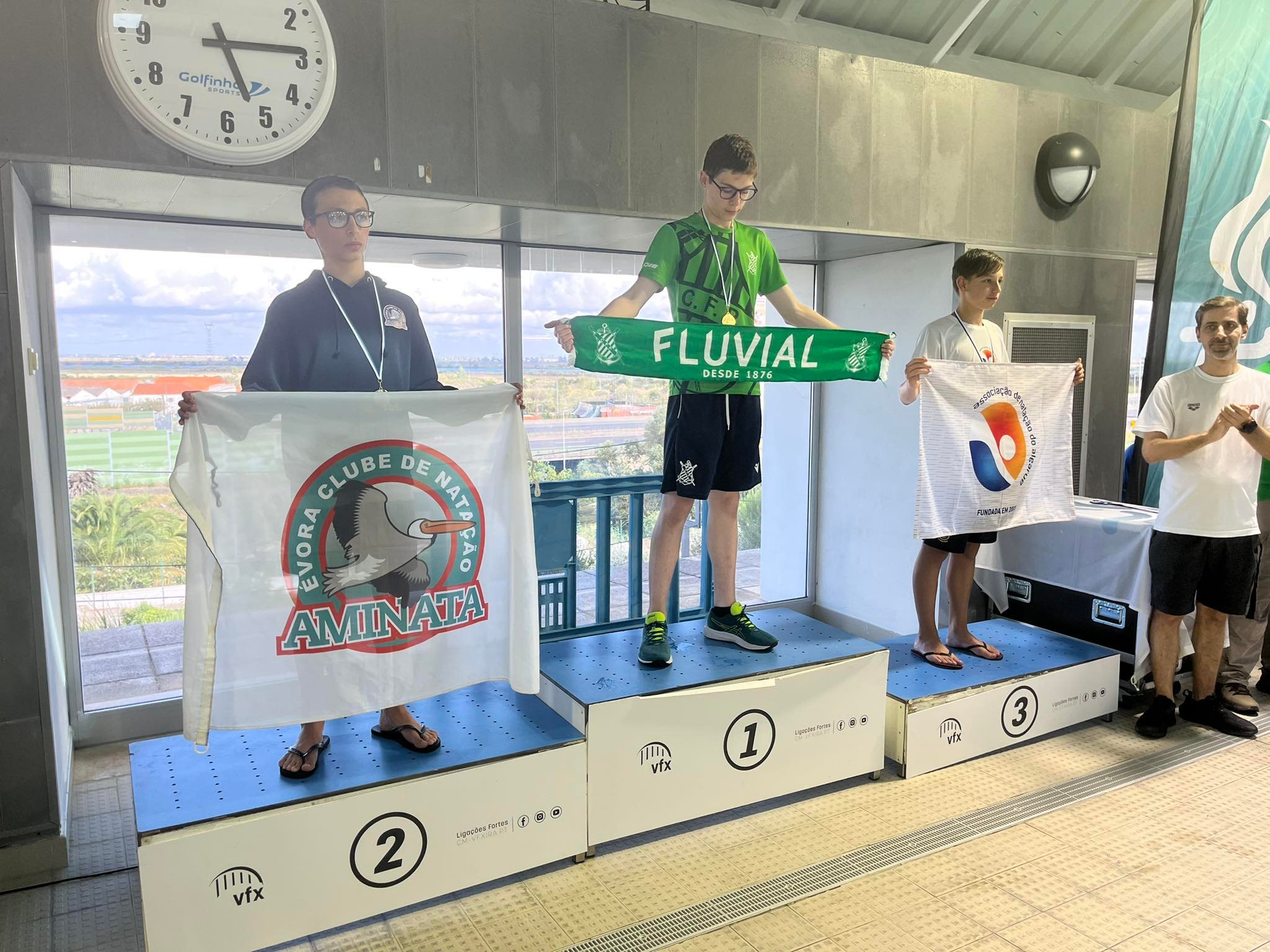 O desempenho dos nossos atletas foi muito positivo, nesta que foi a primeira prova da época em piscina olímpica (50m)! No primeiro dia de competição (sábado), em 9 provas disputadas, obtiveram 8 recordes pessoais, 6 acessos à final e 2 TACs para o Campeonato Nacional de Infantis. No segundo dia de prova, o desempenho dos nossos atletas foi ainda melhor: das 8 provas das eliminatórias conseguiram 8 novos recordes pessoais, 6 finais, 1 TAC para o Campeonato Nacional de Juvenis e 2 pódios (António Bicas 2º lugar 100m Costas e 3º lugar 100m Mariposa)!